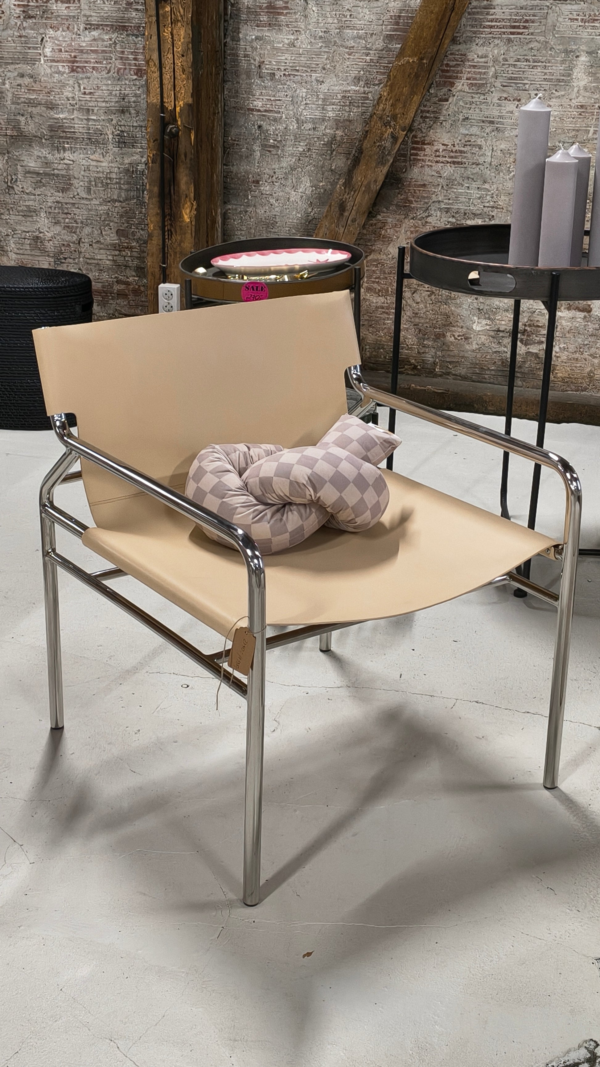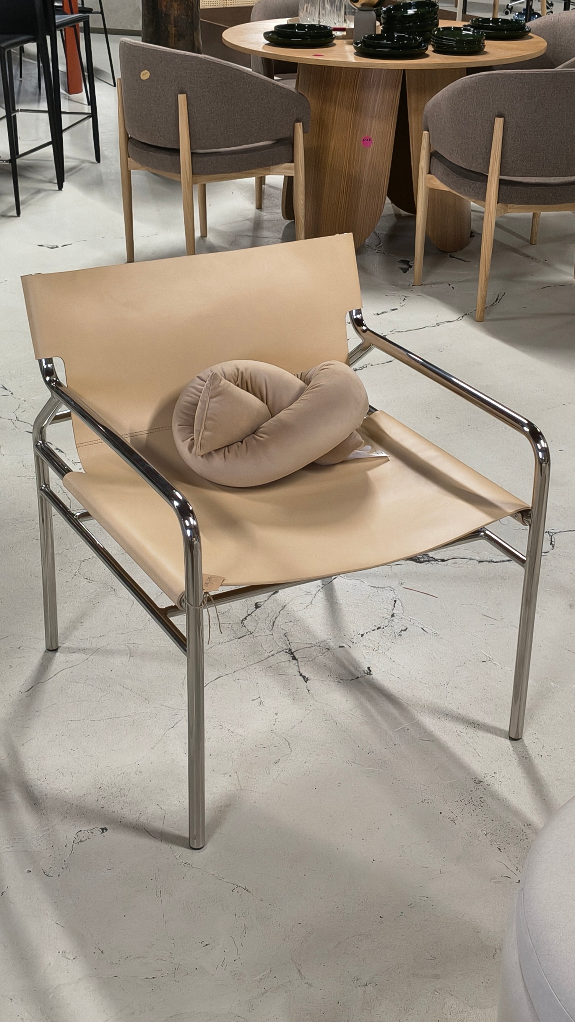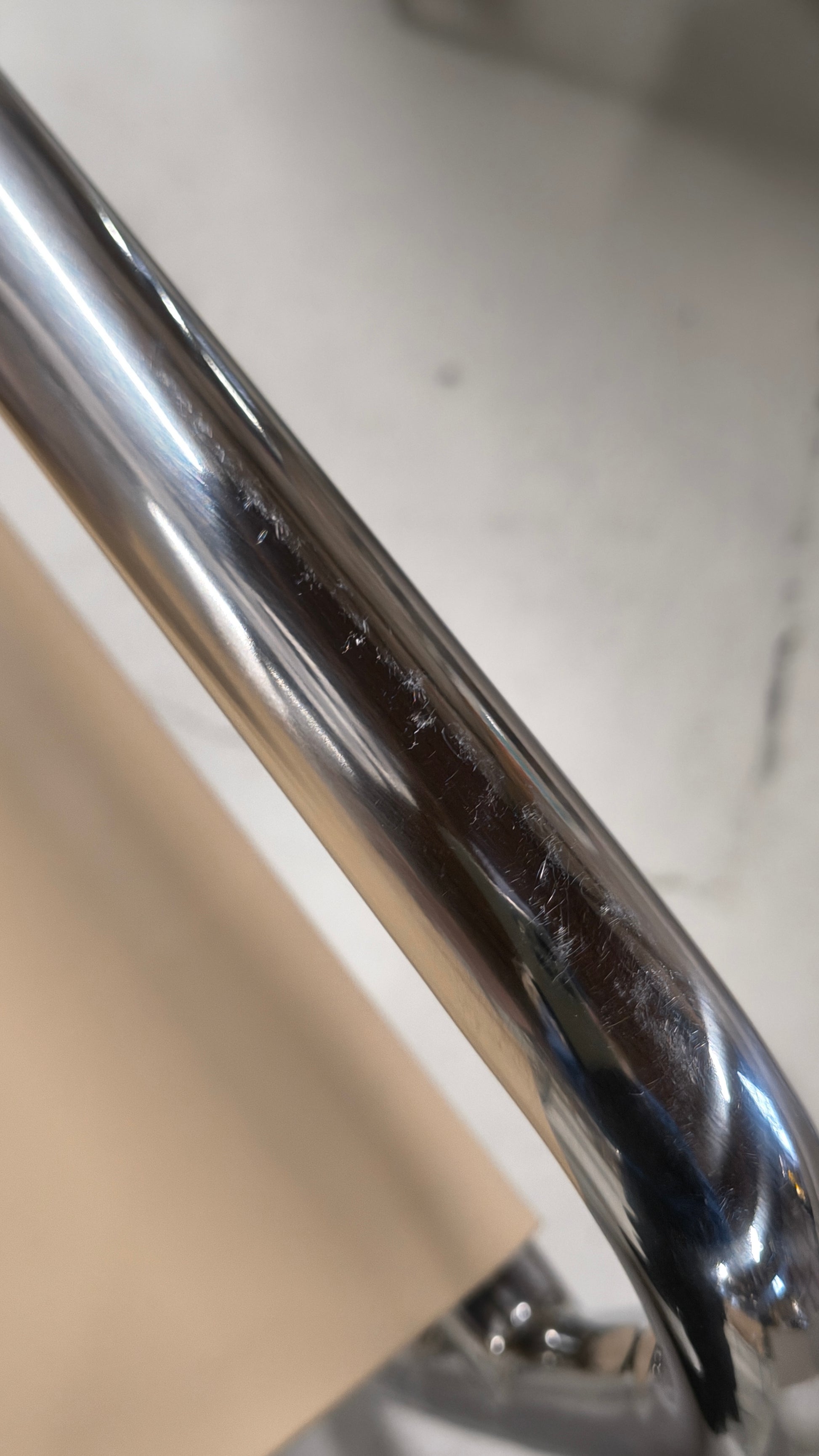 Stan fotela oceniamy na bardzo dobry — posiada jedynie delikatne rysy na chromowanym stelażu, głównie w okolicy podłokietników. (4)
