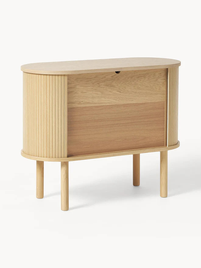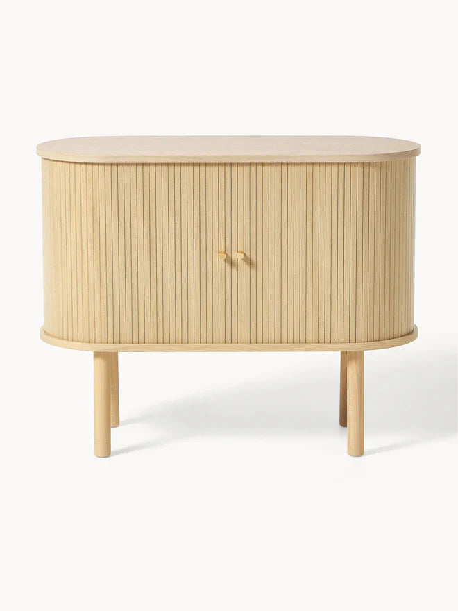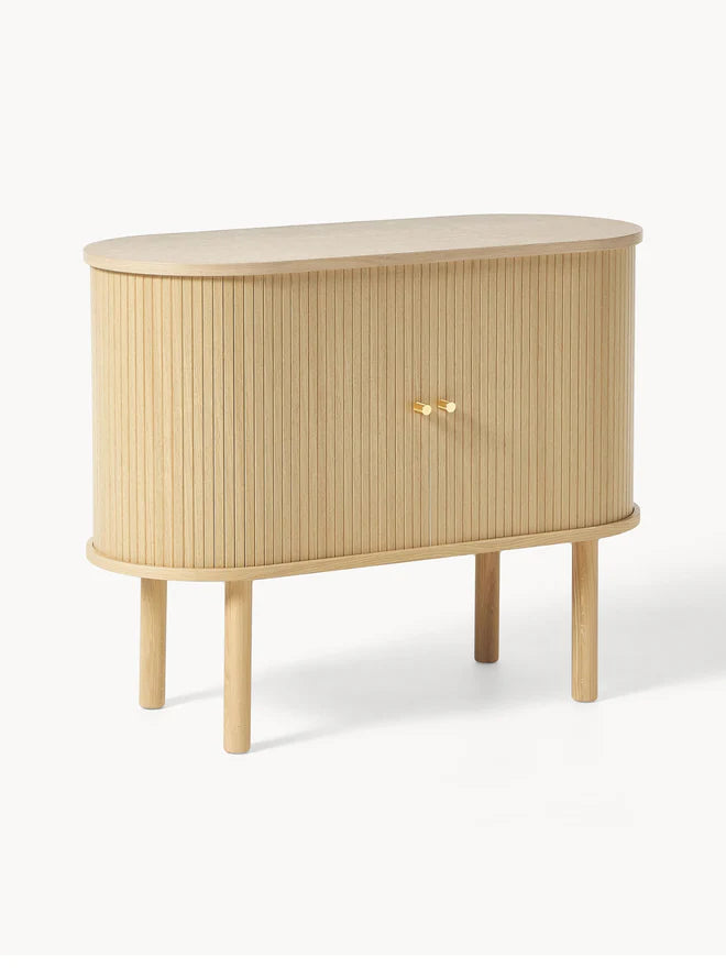 Komoda Calary z 2 przesuwanymi drzwiami z uchwytami. Półki posiadają możliwość regulacji wysokości, dzięki czemu dostosują się do indywidualnych potrzeb. (4)