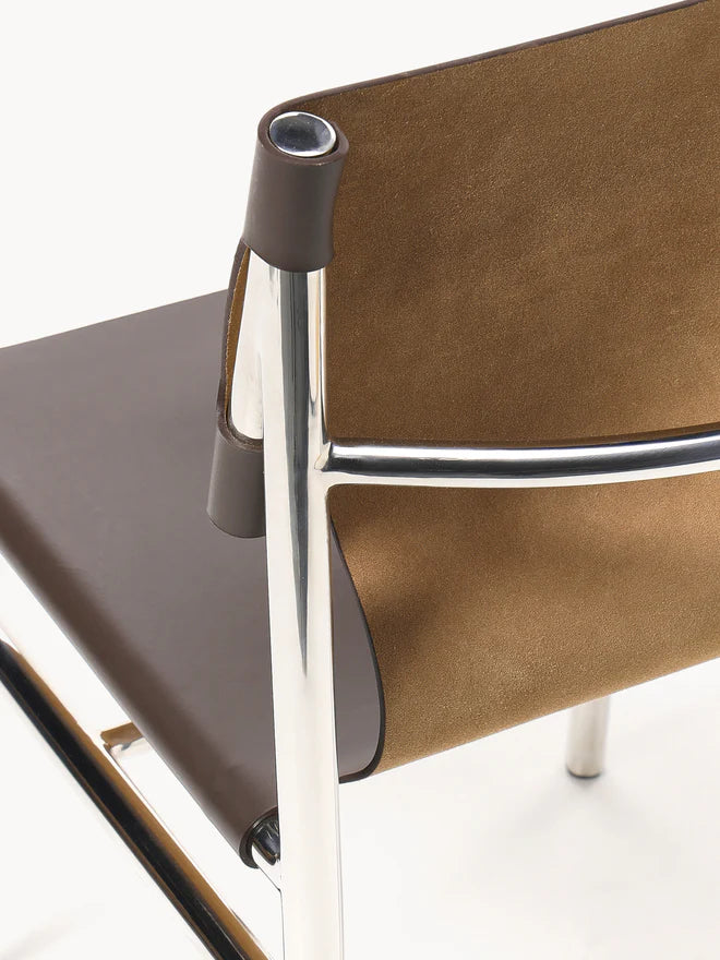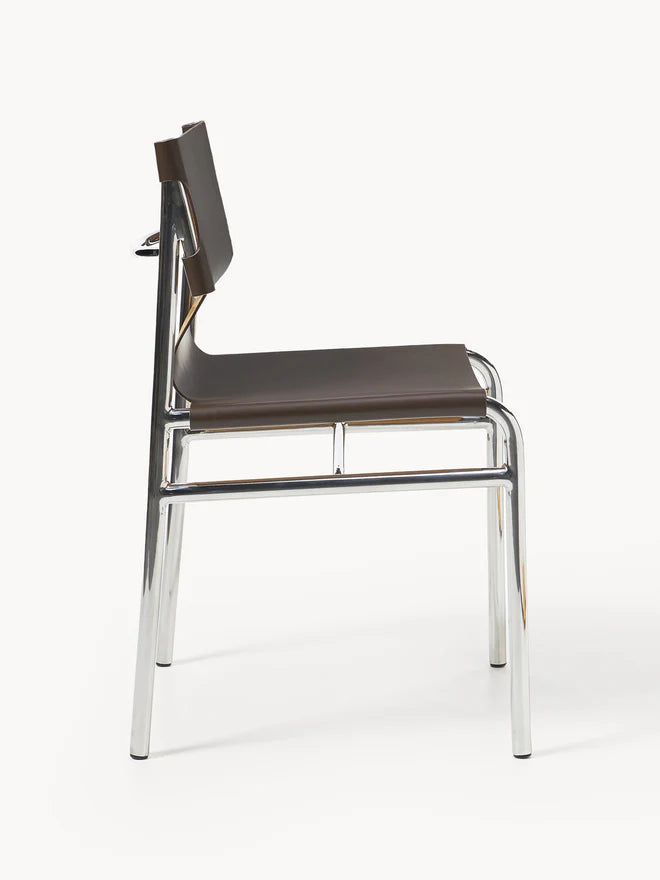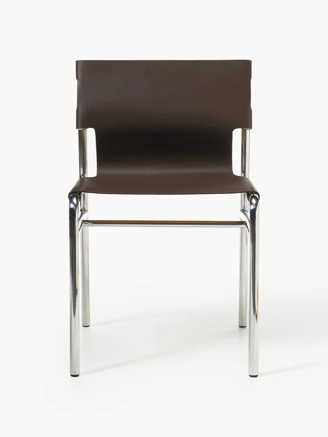 Krzesło JORDAN urzeka smukłą sylwetką i wyrafinowaną przejrzystością. Harmonijne połączenie formy i funkcji – chromowana metalowa rama tworzy czyste, niezakłócone linie, nadając całości wrażenie lekkości i ruchu. Rzeźbiarski przepływ od oparcia do siedziska wprowadza subtelny, lecz wyrazisty rytm. Tapicerowane miękką skórą, krzesło JORDAN łączy w sobie komfort i charakter, a jego modernistyczny wyraz dopełnia przyjemna w dotyku głębia. Z łatwością odnajduje się w przestrzeni jadalnianej, biurowej czy kreatywnej – obecne, ale nienachalne. To krzesło z odważnym duchem i ponadczasową elegancją. (4)