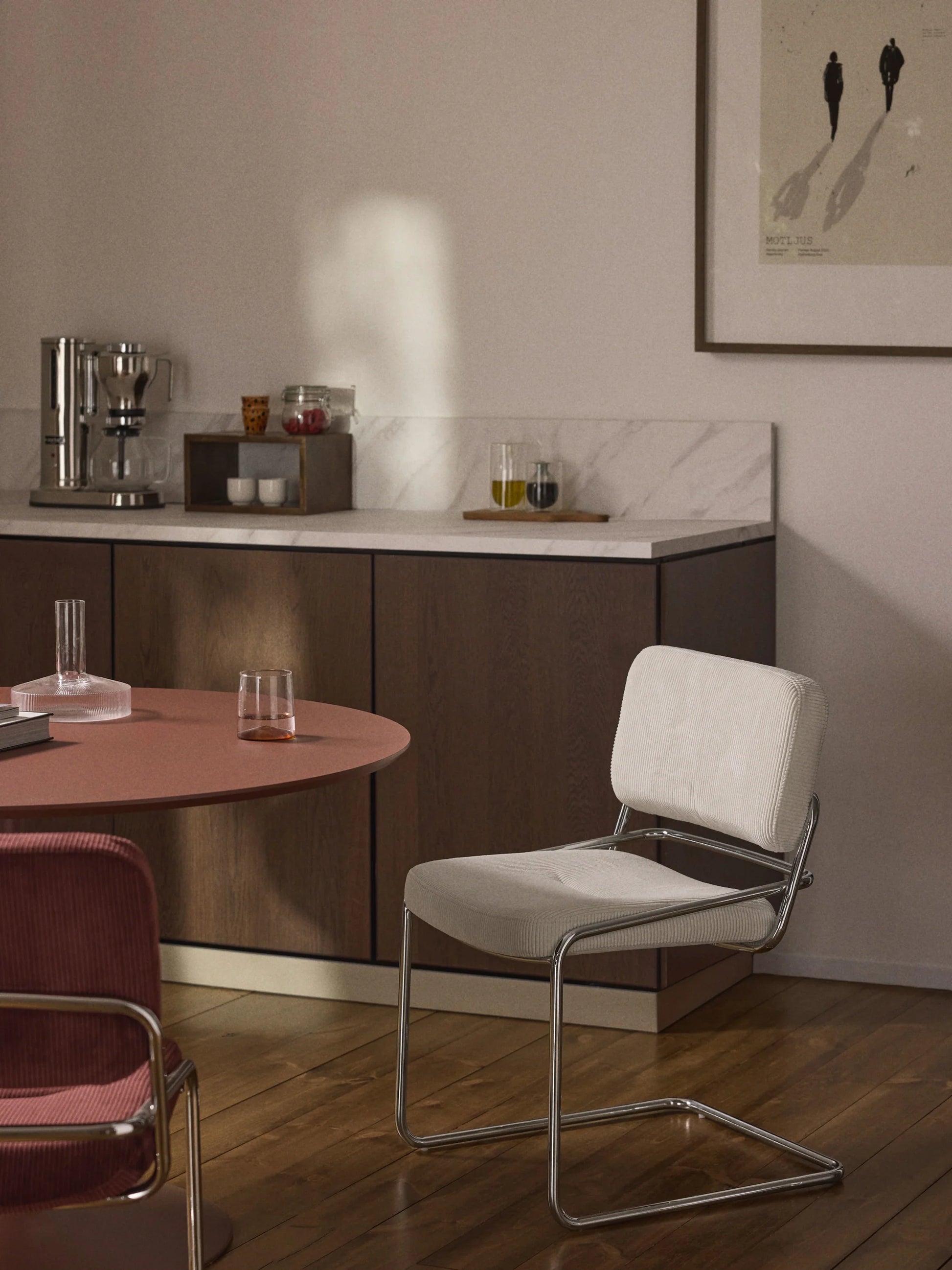 Poznaj naszego DON-a - krzesło z podłokietnikami, które łączy prostotę z ponadczasową elegancją. Dzięki konstrukcji z chromowanego metalu i subtelnemu wpływowi Bauhausu wnosi odrobinę nowoczesności do Twojej jadalni. Niezależnie od tego, czy jest tapicerowane skórą, czy tkaniną, DON jest idealnym towarzyszem każdego miłośnika designu.(2)
