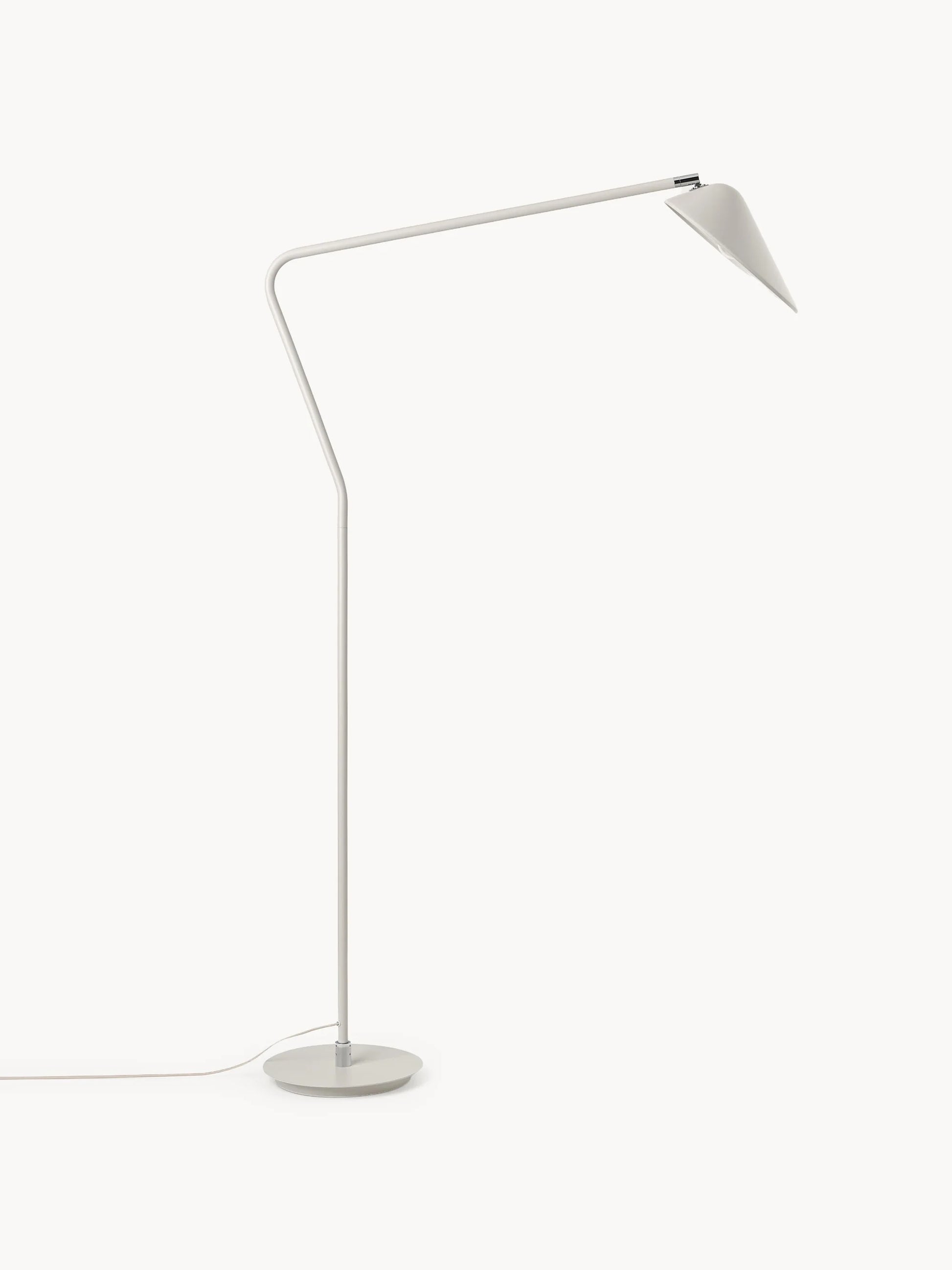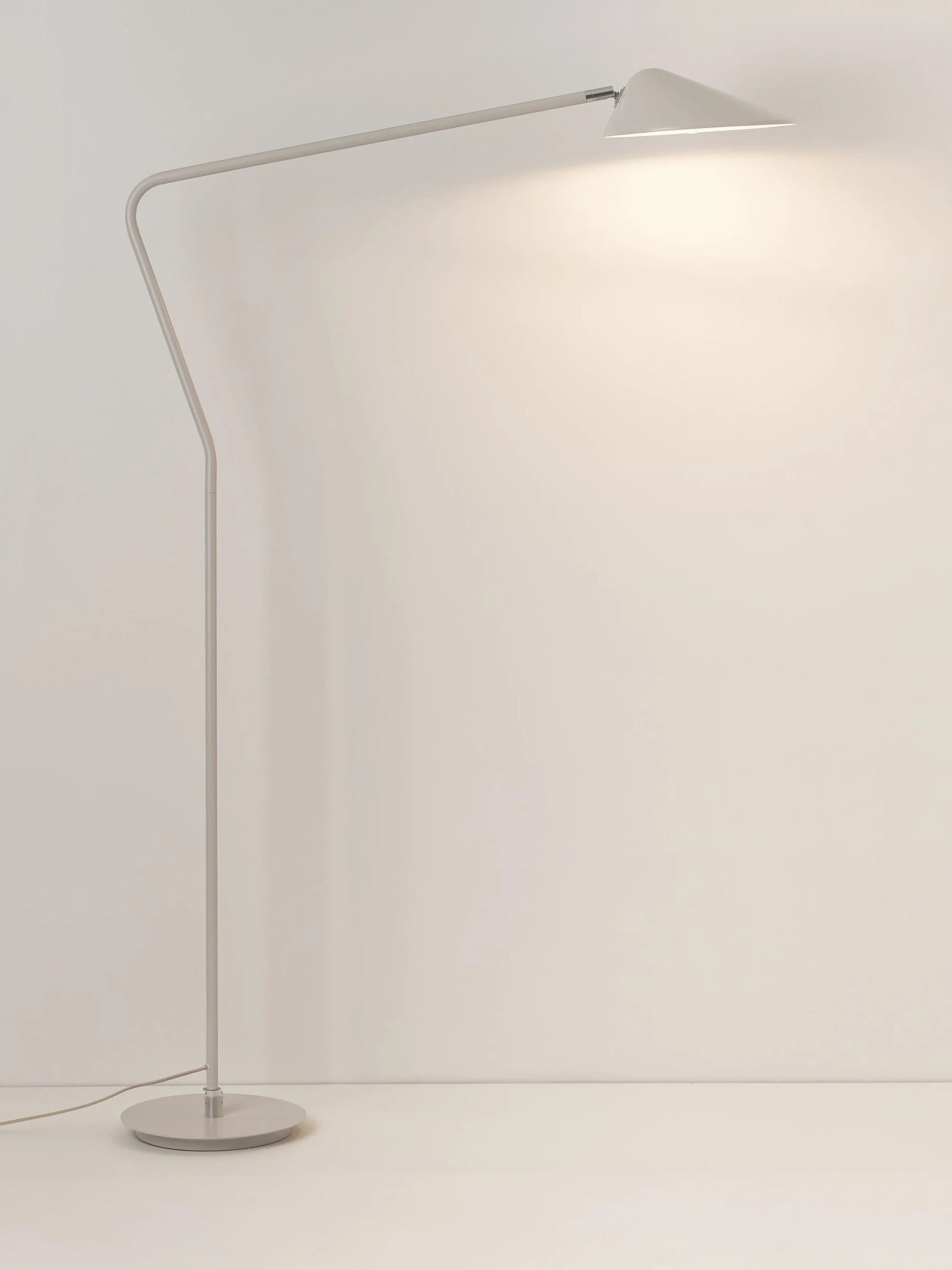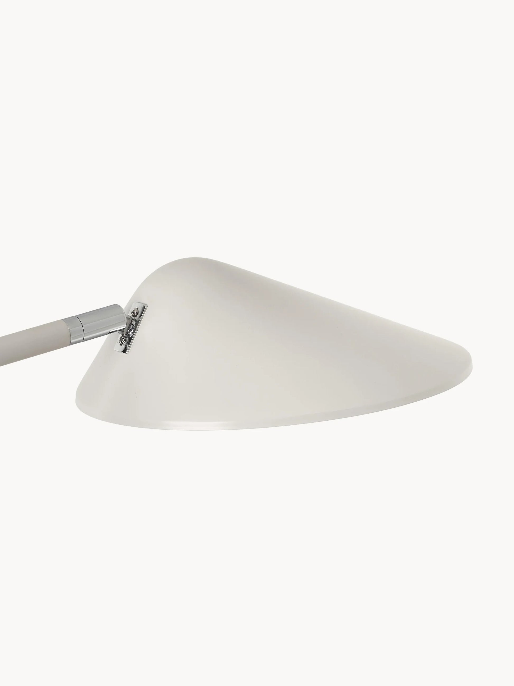 Klosz można indywidualnie regulować w poziomie oraz w pionie. Lampa posiada przycisk nożny na kablu, za pomocą którego można ją włączać i wyłączać.