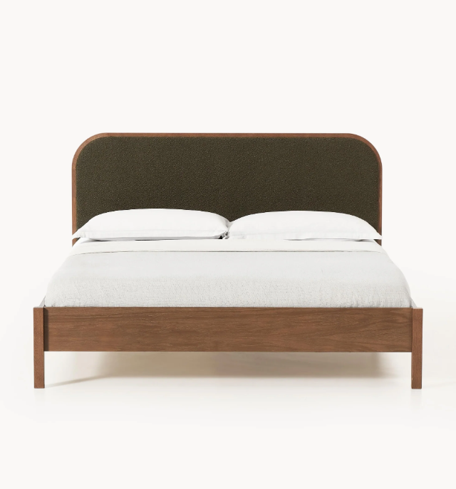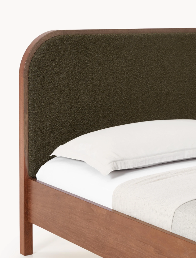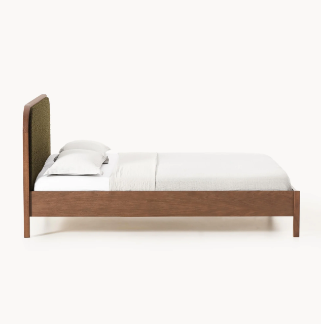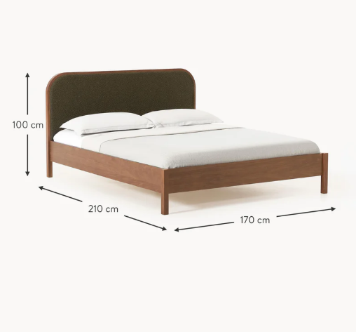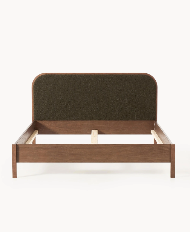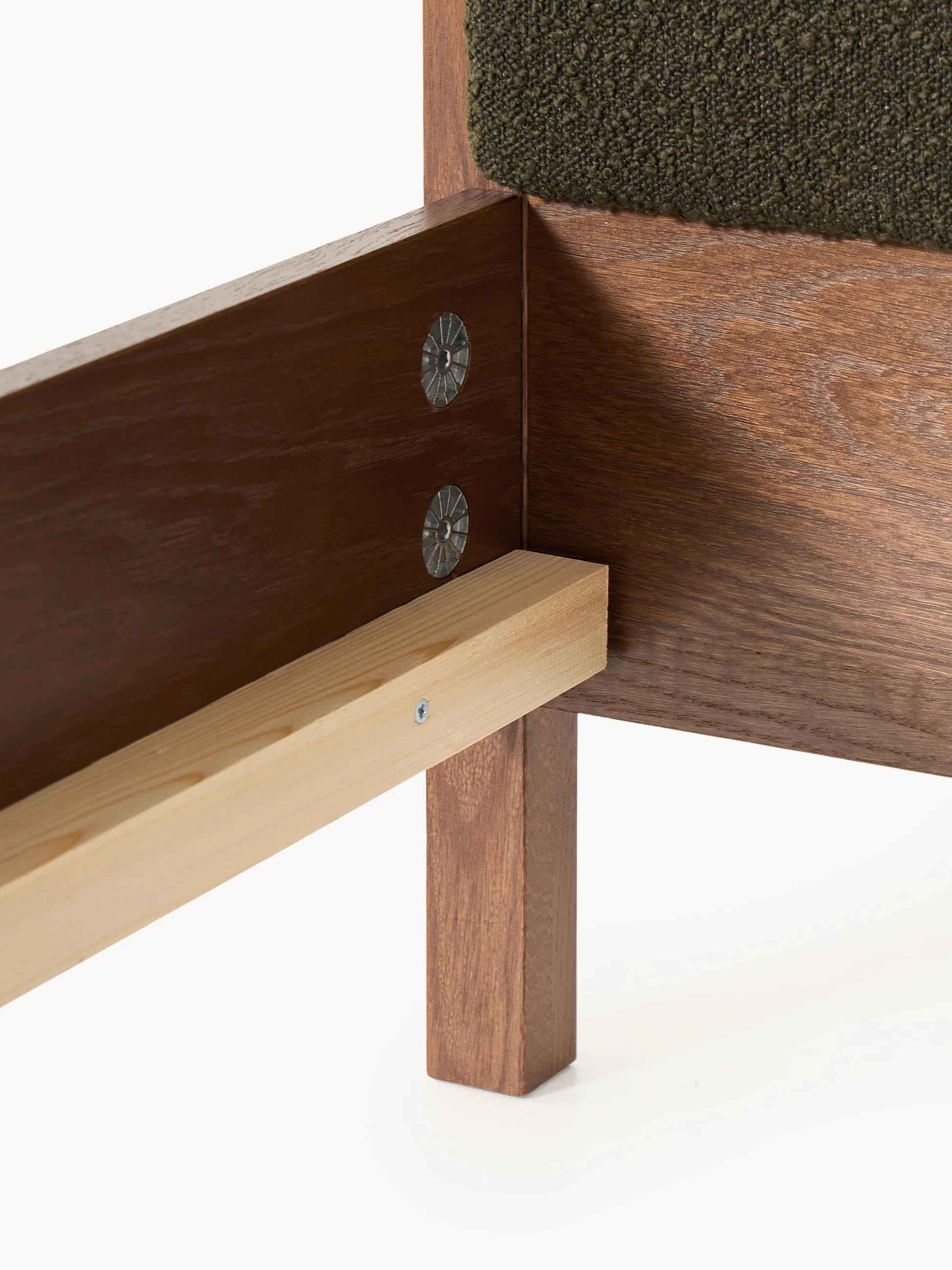 Łóżko z drewna z zagłówkiem Bouclé Jones