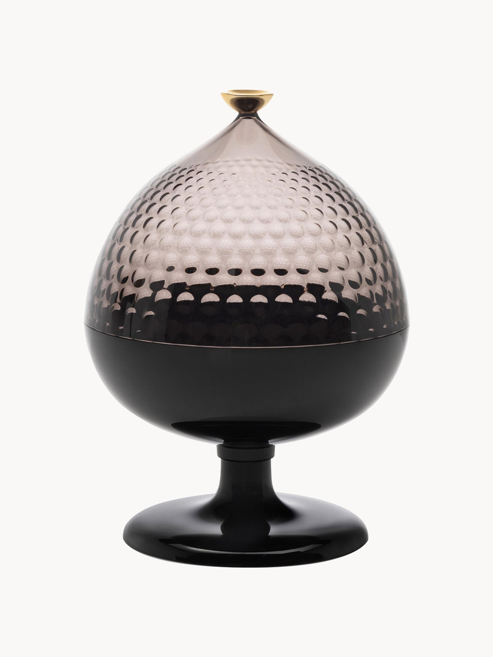 PUMO to zupełnie nowa, wszechstronna dekoracyjna misa, która przyjmuje kształty tradycyjnego apulijskiego talizmanu i została na nowo zinterpretowana dla firmy Kartell z wielopłaszczyznową pokrywką, która idealnie nadaje się również jako element centralny stołu.(2)