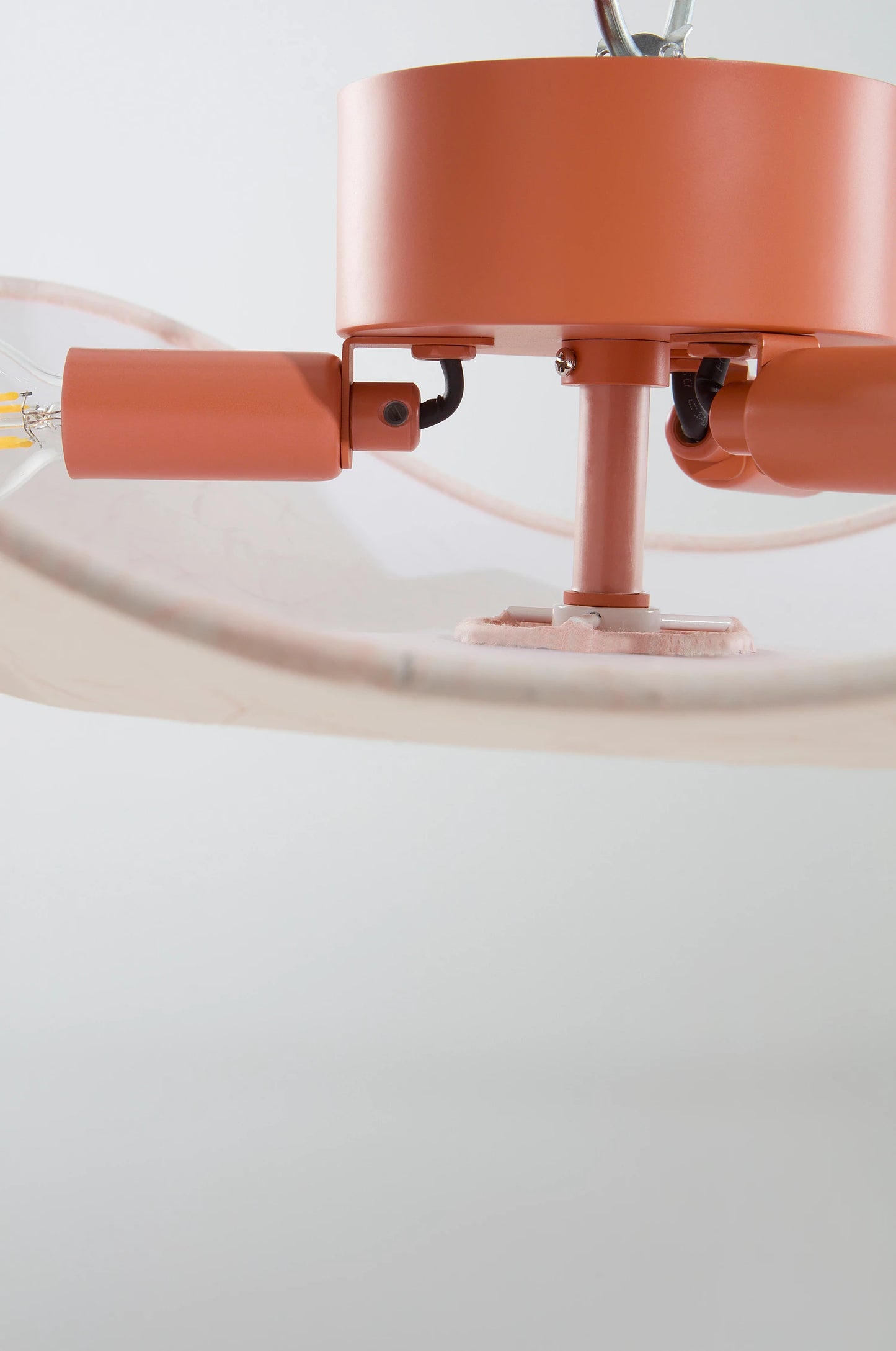 Plafon może posiadać drobne rysy. Plafon sufitowy o miękko zaokrąglonym, papierowym kloszu o marmurkowej strukturze. Oprawka wykonana jest z matowego, czarnego metalu.