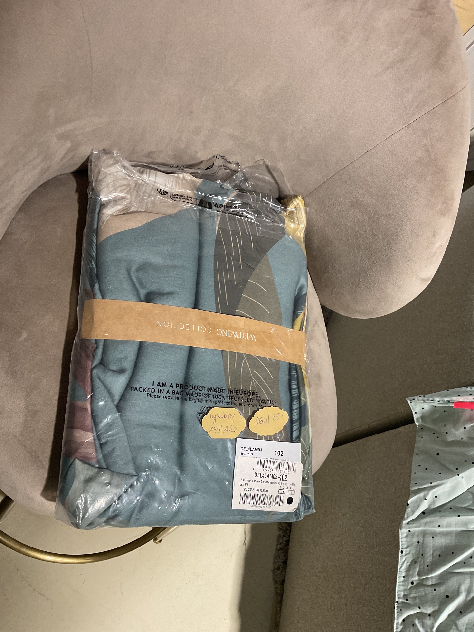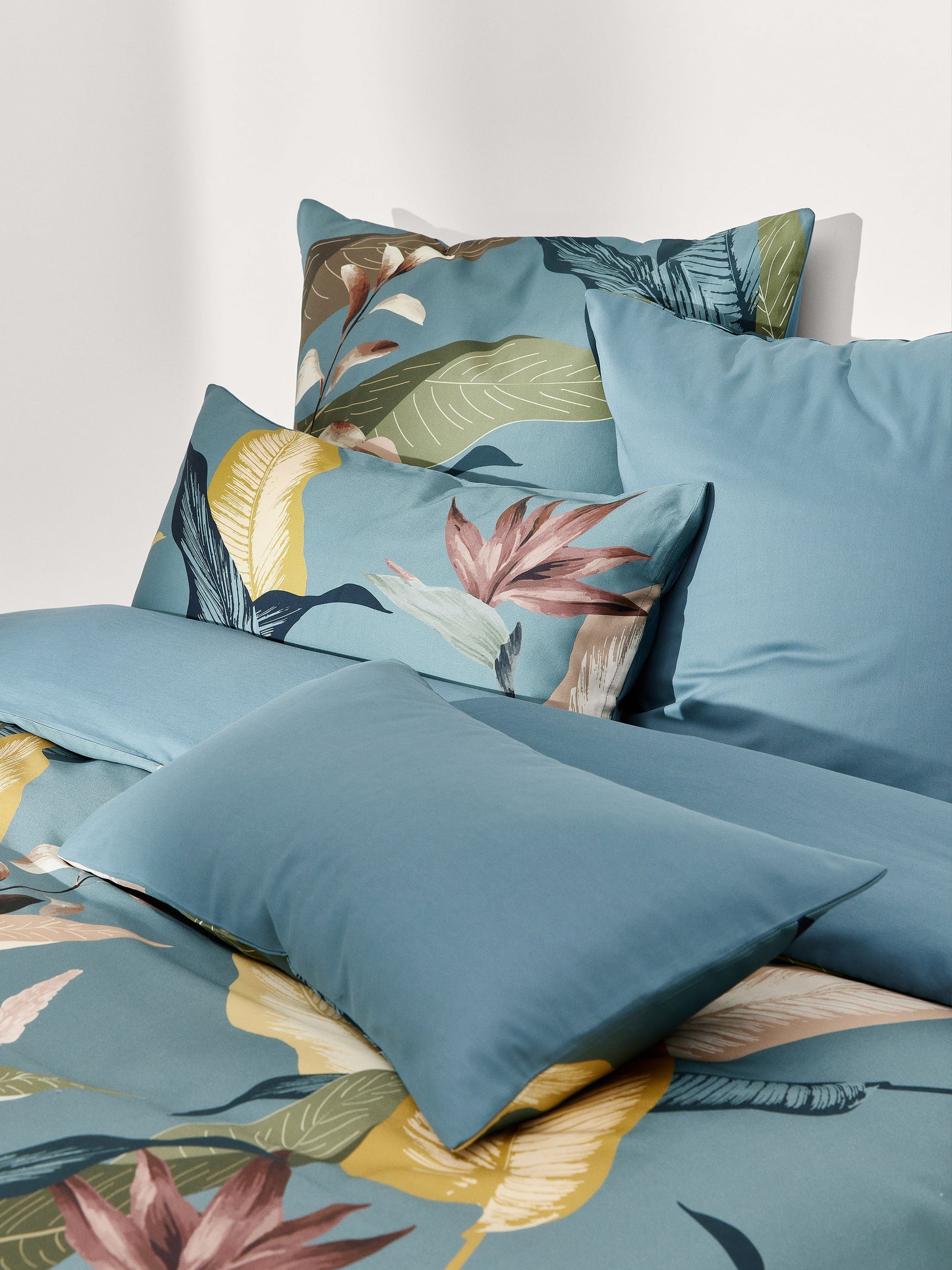 Poszwa na kołdrę z satyny bawełnianej z kwiatowym nadrukiem z przodu i gładkim tyłem jest zapinana na guziki i została uszyta w Portugalii. (2)