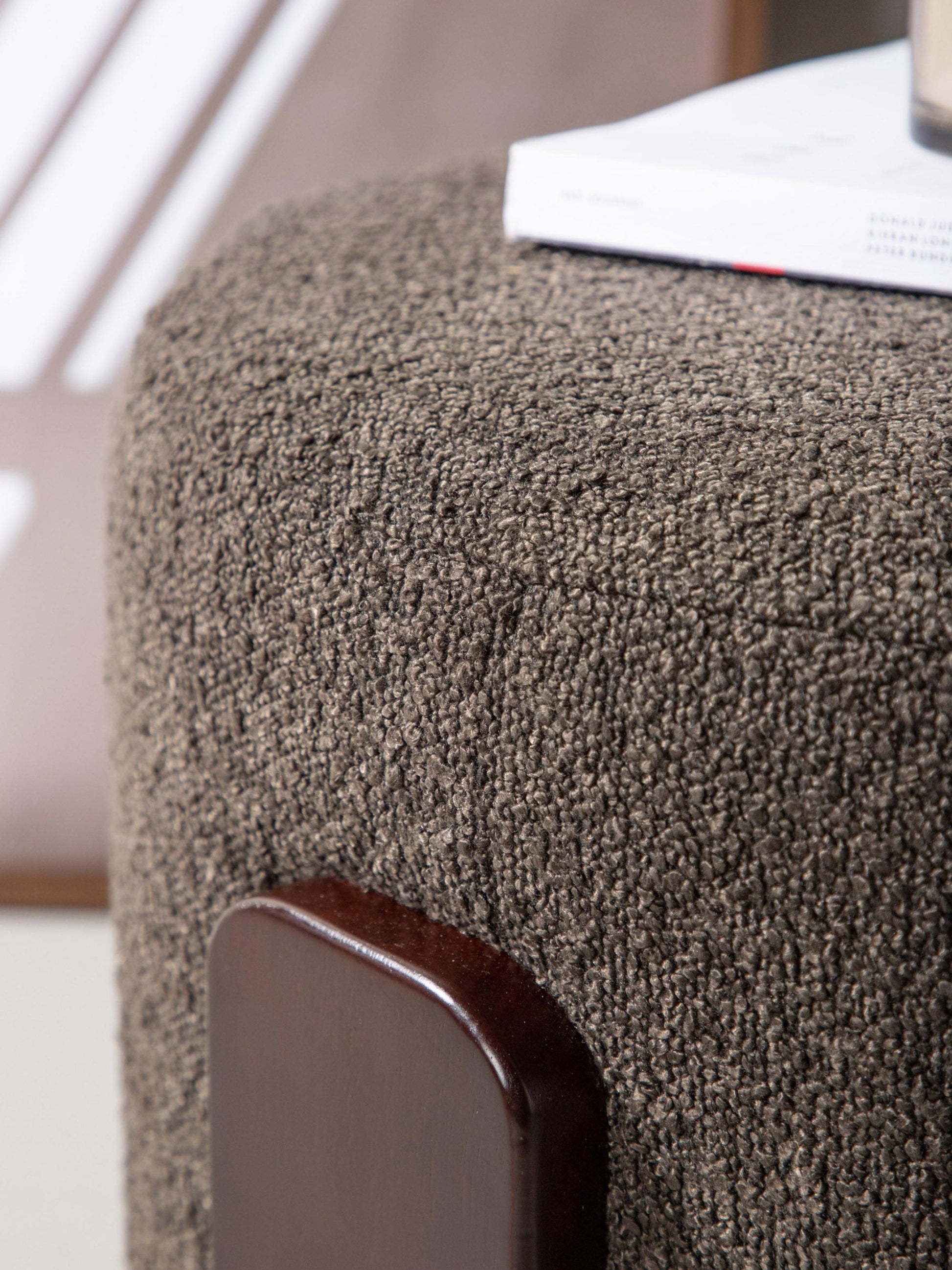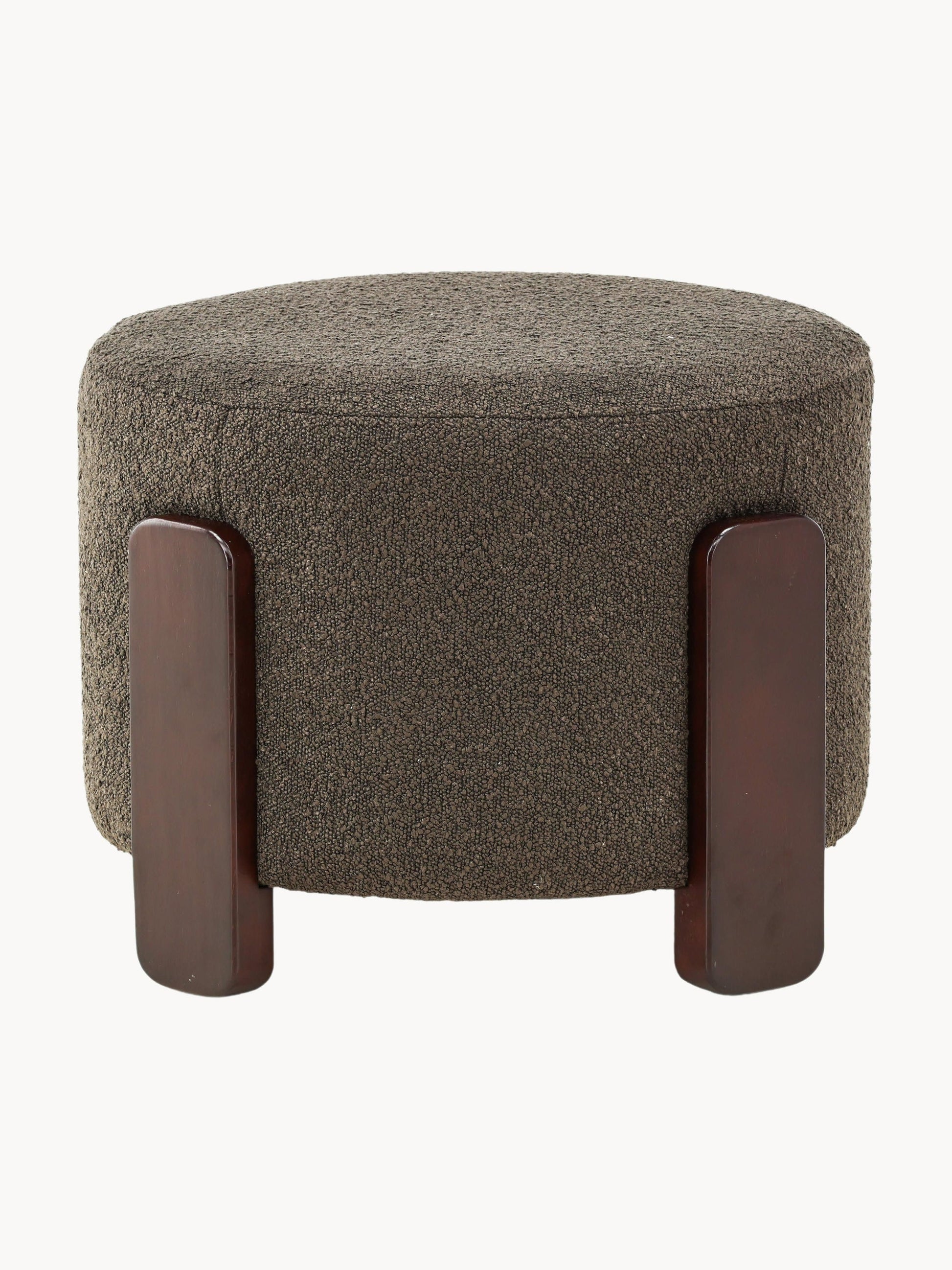 Puf tapicerowany Bouclé z drewnianymi nogami Coffey