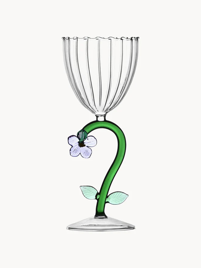 Ręcznie wykonany kieliszek ze szkła borokrzemowego do białego wina BOTANICA ozdobi stół w jadalni romantyczną łodygą i zabawnym kwiatem – prawdziwie bajkowy design na specjalne okazje. (4)