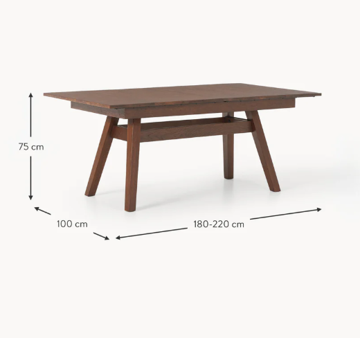 Stół można rozbudować za pomocą dodatkowych płyt przedłużających. Dodatkowe płyty mogą być przymocowane do jednego lub obu końców stołu, a następnie połączone za pomocą ram. Dwie zewnętrzne płyty są odsuwane na boki, a trzecia, środkowa płyta znajdująca się pod spodem, automatycznie unosi się do góry.