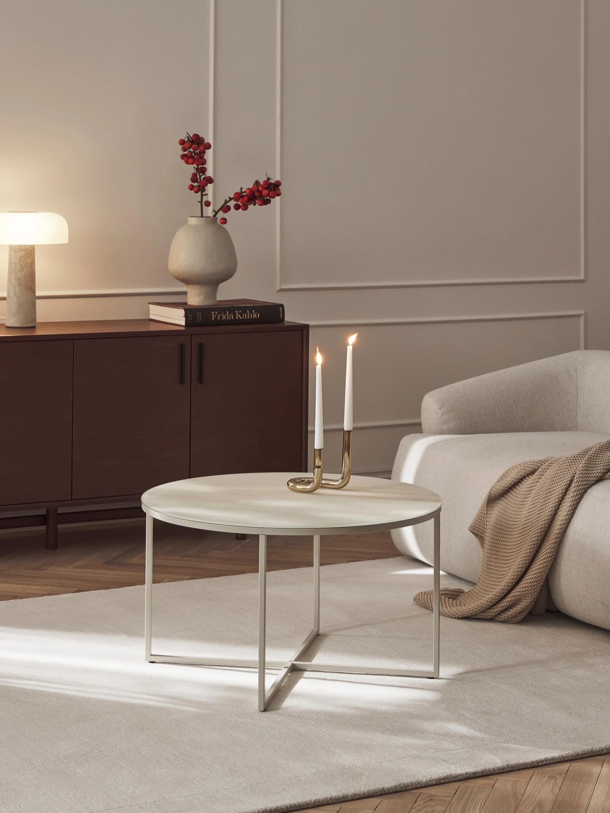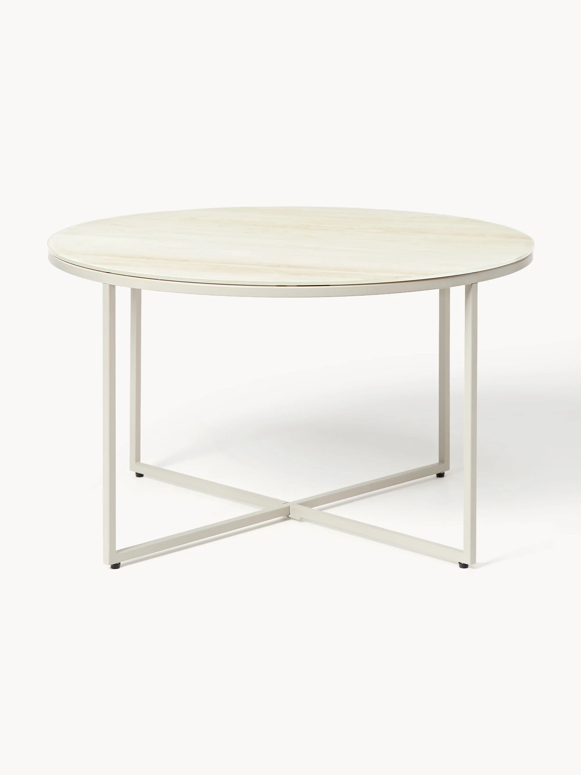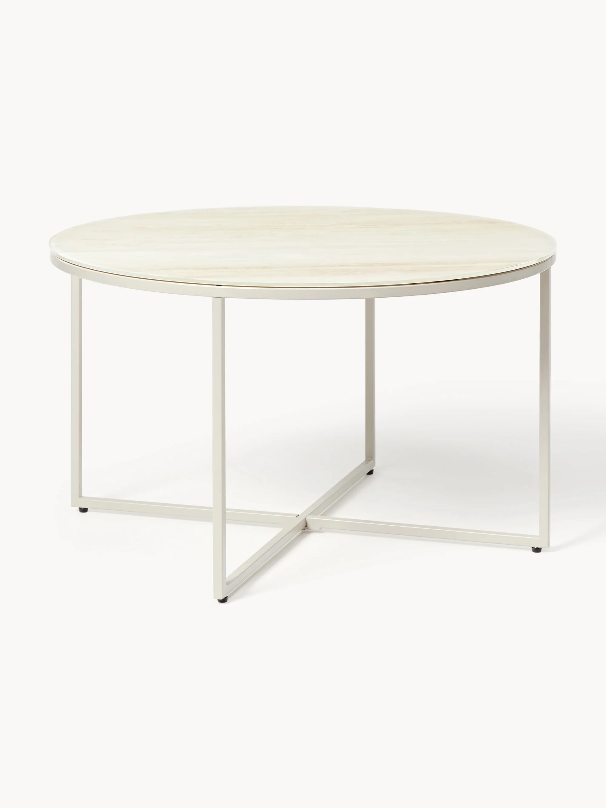 Stolik kawowy ze szklanym blatem o wyglądzie traweryntu Antigua
