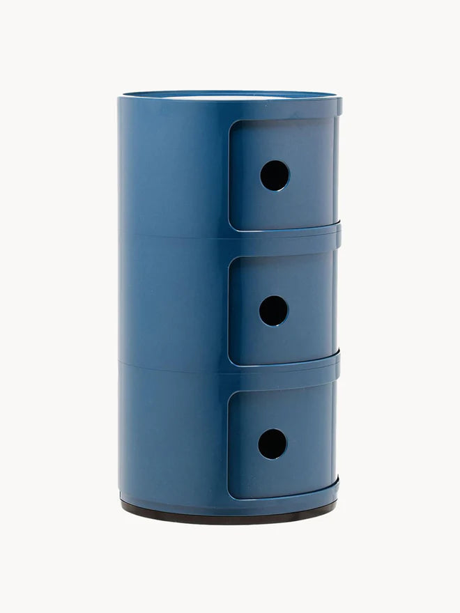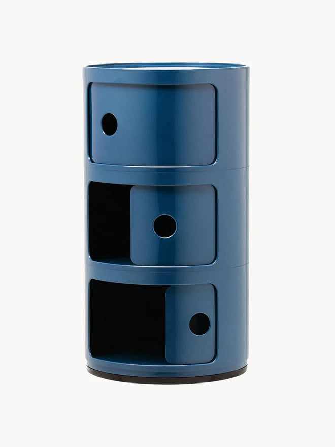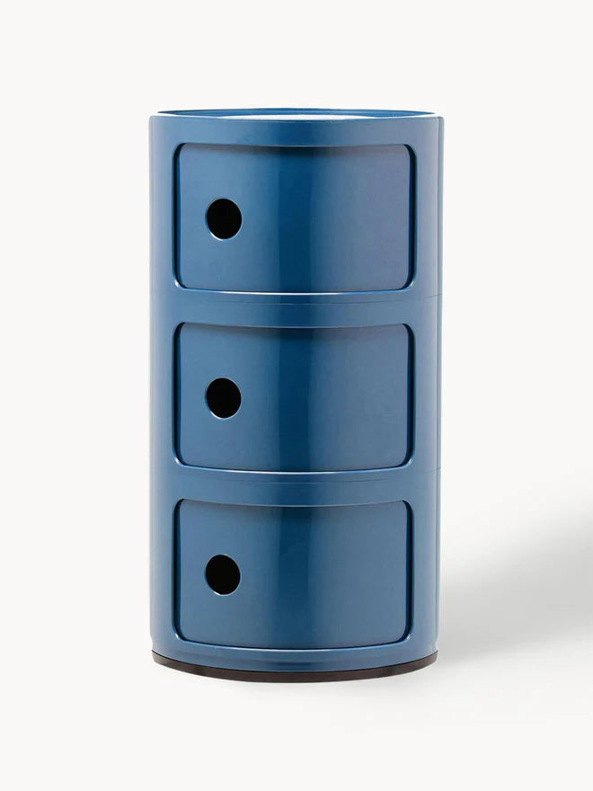COMPONIBILI, zaprojektowane przez Annę Castelli Ferrieri w 1967 roku, uważane są za kultowe dzieło designu. Dzięki elastycznym modułom składającym się z dwóch, trzech lub czterech części, łatwo dopasowują się do każdego pomieszczenia i oferują szeroki zakres możliwych zastosowań. Jego minimalistyczny design doskonale wpasowuje się w szeroką gamę stylów wyposażenia wnętrz, nie tracąc przy tym funkcjonalności. (4)