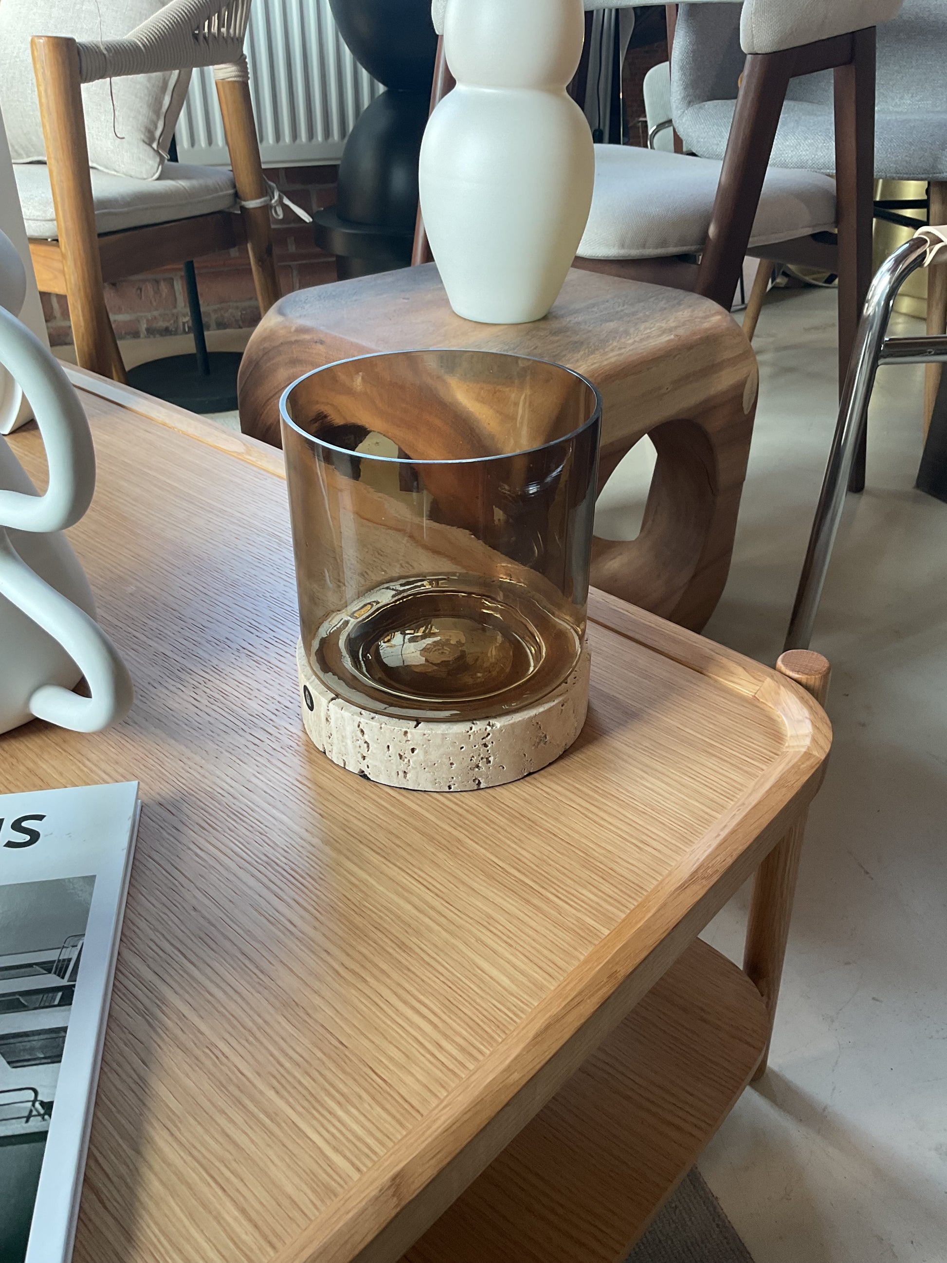 Świecznik ze szkła dmuchanego z trawertynową podstawą Rivo